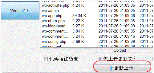 4、如果你想對你已經(jīng)安裝的Wordpress的文件進(jìn)行修改,例如上傳主題和插件,點(diǎn)擊更新上傳。如下圖: