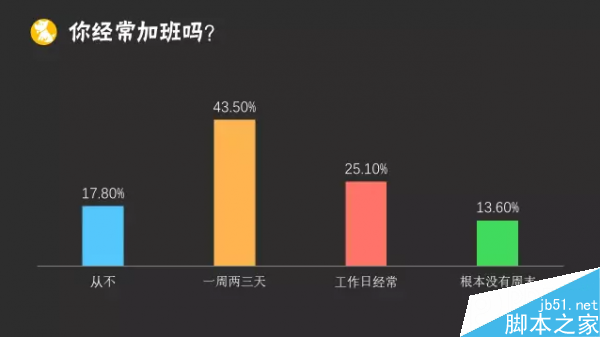 即使不在創(chuàng)業(yè)公司,有一些社區(qū)的運(yùn)營(yíng),周末除了需要更新內(nèi)容和首頁(yè)物料,遇到熱點(diǎn)事件還得出內(nèi)容做專題,工作節(jié)奏完全趕上了戰(zhàn)地記者。對(duì)嚴(yán)苛要求自己的運(yùn)營(yíng)來說,生活即工作,工作即生活,單身汪恨不得把家搬公司了。有17.8%從不加班的運(yùn)營(yíng),不知道你們公司還招人嗎?