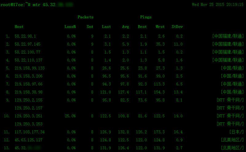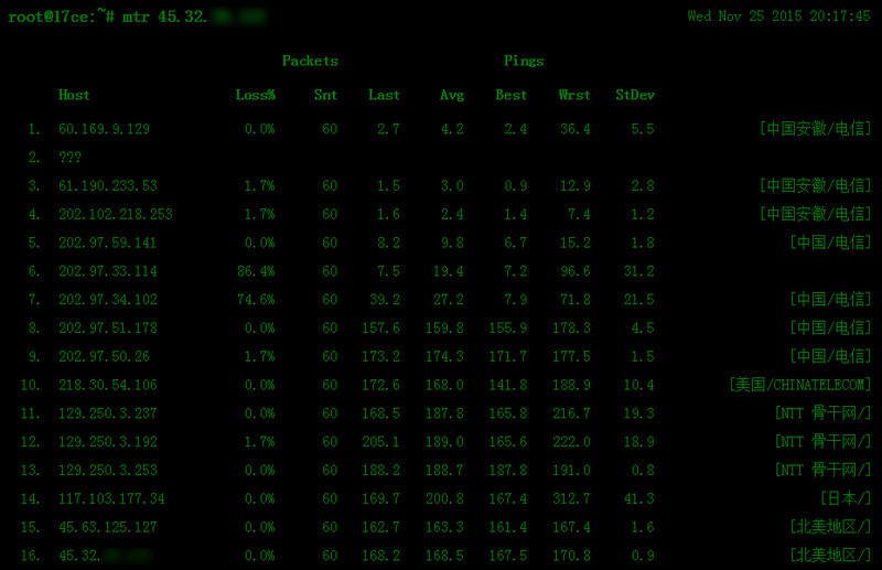 性?xún)r(jià)比雖不錯(cuò),那對(duì)國(guó)內(nèi)環(huán)境來(lái)說(shuō)網(wǎng)絡(luò)情況又如何,下面是不同運(yùn)營(yíng)商的tracert路由跟蹤截圖,和超級(jí)ping工具的測(cè)試供參考。
