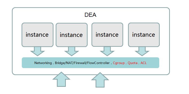 Cloud Foundry用warden來實現(xiàn)資源隔離與訪問控制的,但是JAE的第一個版資源隔離策略使用了vcap dev,當時沒有warden。在當時的背景下,Cloud Foundry官網(wǎng)還未遷移至v2版、業(yè)內(nèi)的成功應用也比較少, JAE采取穩(wěn)中求進的方案,即在vcap dev的基礎上,借鑒了warden思路,以此來實現(xiàn)資源隔離和訪問控制。下面,我們將詳細介紹JAE的第一版資源隔離實現(xiàn)方法,該方法部署起來所需的資源比較靈活,既支持單機部署也支持多機部署,對個人開發(fā)者有很好的借鑒參考。