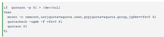Quota的初始化同樣發(fā)生在啟動dea時,在此之前,要先安裝quota,并指定要進行quota管理的分區(qū),這里用$1傳參。