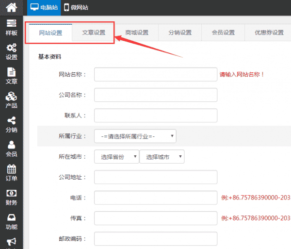 第四步、網(wǎng)站設(shè)置。在網(wǎng)站的管理后臺設(shè)置處,設(shè)置好網(wǎng)站的名稱、聯(lián)系人等,文章設(shè)置處,設(shè)置好文章顯示的內(nèi)容,如作者、發(fā)表時間、瀏覽次數(shù)、來源等等。