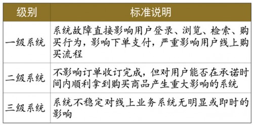 當(dāng)當(dāng)網(wǎng)基于可能對(duì)用戶產(chǎn)生影響的程度與敏感度,將所有應(yīng)用系統(tǒng)分為三級(jí),簡(jiǎn)單描述如表。
