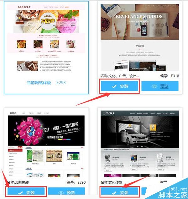 第二步、進(jìn)入編輯頁面,安裝樣板網(wǎng)站。樣板網(wǎng)站是建站公司已經(jīng)做好的漂亮網(wǎng)站,挑選一個(gè)你喜歡的進(jìn)行安裝,只需要更換樣板網(wǎng)站圖片和文章即能完成網(wǎng)站,非??焖俸?jiǎn)單。