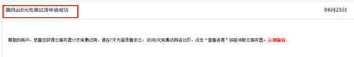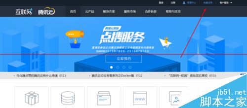 2、本文以騰訊云主機申請為例來說明申請流程。首先進入騰訊云網(wǎng)站??吹接疑辖堑拿赓M試用。點擊進入。