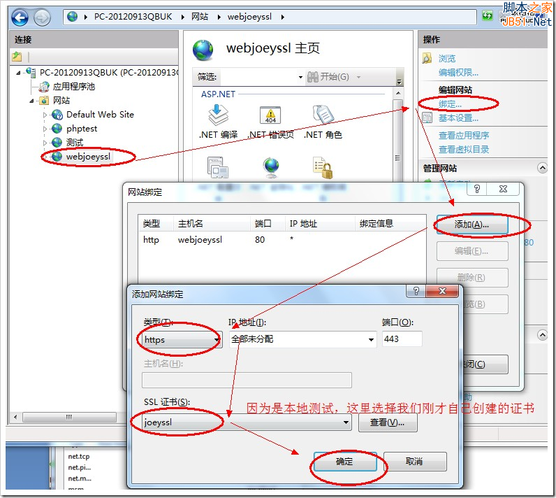 接下來,我們新建一個本地測試站點,并且綁定剛才我們創(chuàng)建的證書。