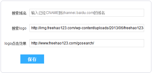 在以下位置填寫已備案并正確的cname到zhannei.baidu.com的域名,建議填寫新的二級域名以免影響您站點的已有服務。如您填寫未經(jīng)cname的域名,會導致從搜索框跳轉(zhuǎn)至結(jié)果頁時出錯。