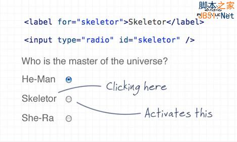 利用“for”屬性允許用戶單擊label也可以選中表單中的內(nèi)容。這可以擴(kuò)大復(fù)選框和單選框的點(diǎn)擊區(qū)域,非常實(shí)用。