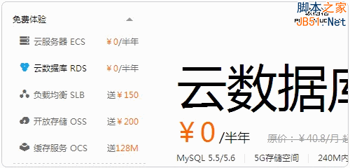 5、除了阿里云ECS免費半年外,還有免費半年云數(shù)據(jù)庫 RDS、送¥150負載均衡 SLB、送5GB開放存儲 OSS、送128M緩存服務 OCS等等,有興趣的朋友可以體驗一下。
