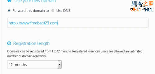 3、接著跳轉(zhuǎn)到域名注冊(cè)頁(yè)面,選擇域名URL跳轉(zhuǎn)、注冊(cè)時(shí)長(zhǎng)、防機(jī)器人注冊(cè)碼等。