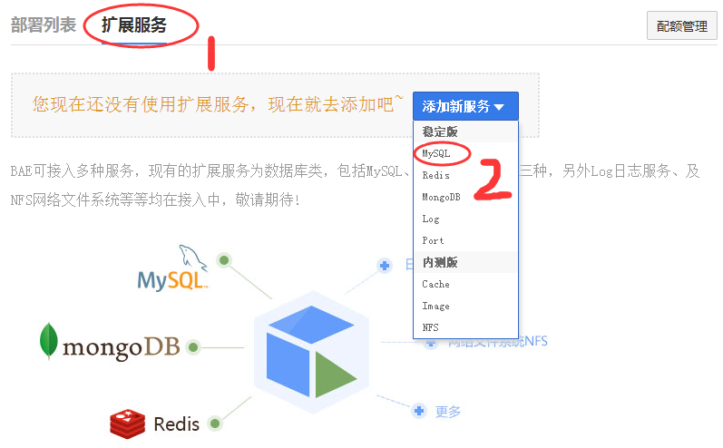 點(diǎn)擊擴(kuò)展服務(wù)-添加新服務(wù)-MySQL