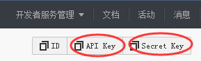 需要注意的是此處的用戶名和密碼是”該應(yīng)用的API Key/Secret Key”。在百度BAE管理控制臺(tái)頁面的右上角。