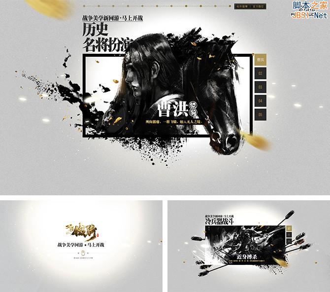如:刀鋒鐵騎品牌站,采用黑金兩色,將這款冷戰(zhàn)爭(zhēng)網(wǎng)游,用最簡(jiǎn)單的方式表現(xiàn)最純粹的視覺,更加有感染力。