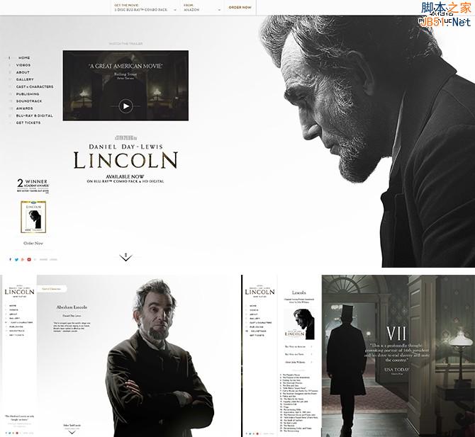 例如:LINCOLN電影網(wǎng)站,運(yùn)用最常用的黑白兩種顏色搭配,讓網(wǎng)頁如此簡(jiǎn)約大方,給人留下無限想象空間。