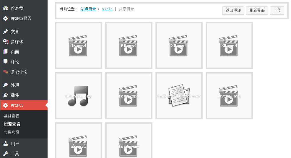 因 為默認(rèn)情況下,百度網(wǎng)盤內(nèi)是不存在你的網(wǎng)站站點(diǎn)對應(yīng)的目錄的,所以需要用一個(gè)方法來激活,方法特別簡單,隨便上傳一個(gè)文件就可以了。進(jìn)入你的網(wǎng)站 后臺,進(jìn)入菜單“WP2PCS – 資源查看”菜單,點(diǎn)擊“上傳”按鈕,接下來會打開百度網(wǎng)盤的界面,上傳一個(gè)txt吧?,F(xiàn)在打開百度云管家(網(wǎng)盤客戶端),打開之后雙擊“我的應(yīng)用數(shù)據(jù)”目 錄,是不是發(fā)現(xiàn)多了一個(gè)wp2pcs目錄,依次點(diǎn)擊進(jìn)去,找到剛才你上傳的那個(gè)txt,這個(gè)目錄就是你的站點(diǎn)對應(yīng)的目錄了。把你的視頻上傳到這里。