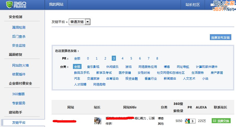從去年開始百度、Google就開始打擊鏈接交易平臺了,而360網(wǎng)站安全檢測反其道而行之,在今年4月中旬推出了友鏈交換平臺,對各種網(wǎng)站進(jìn)行了分門別類,非常全面,而其參考標(biāo)準(zhǔn)則是360搜索收錄、PR值和Alexa排名。