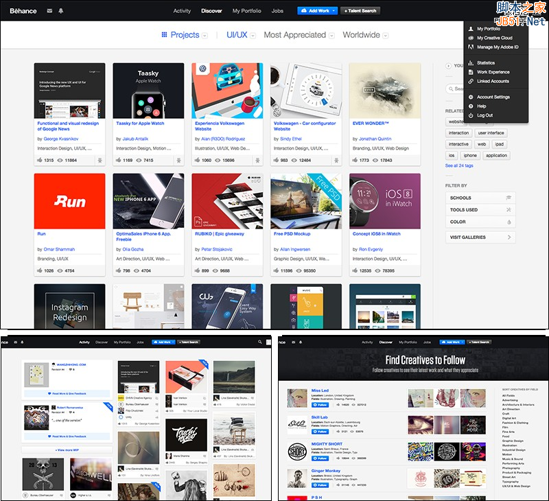 黑色突出網(wǎng)站導航和內(nèi)容模塊的區(qū)分,品牌藍色主要用于可點擊的操作控件,包括用戶名稱、內(nèi)容標題。相較于大片使用品牌色的手法,更能突出 內(nèi)容和信息,適合以內(nèi)容為王的通用化、平臺類站點。
