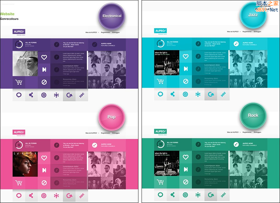 拿紫色界面來說,利用同一色相通過色調(diào)深淺對比,營造頁面空間層次。雖然色彩深淺搭配合理,但有些難以區(qū)分主次,由于是同一色相搭配,顏 色的特性決定著心理感受。