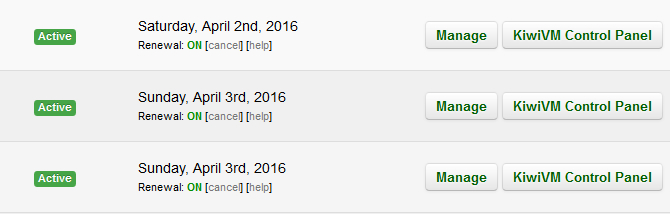 從上圖中,我們可以看到在VPS列表中默認(rèn)都是有一個(gè)ON的狀態(tài),很多人以為是自動(dòng)開啟自動(dòng)續(xù)費(fèi)的,其實(shí)根據(jù)官方的解讀任何機(jī)器都不會(huì)自動(dòng)扣費(fèi)的,全部采用用戶自主付款模式。這個(gè)ON僅僅代表賬單到期的時(shí)候會(huì)通過郵件,以及后臺(tái)提醒我們需要續(xù)費(fèi)而已,會(huì)產(chǎn)生一個(gè)續(xù)費(fèi)付款工單。如果我們點(diǎn)擊OFF,那就不會(huì)給我們推送續(xù)費(fèi)工單。
