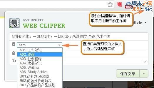 Evernote提供剪輯工具可以添加到chrome瀏覽器的應(yīng)用,從而閱讀網(wǎng)頁(yè)時(shí)可以隨時(shí)調(diào)用歸檔待讀資料。