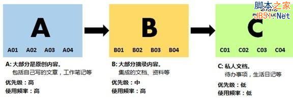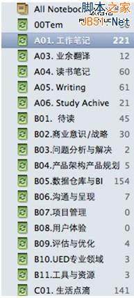 建立了你的主題關(guān)鍵詞后,evernote的筆記本也可以建立相應(yīng)的名稱,以便于你歸類不同的資料、文檔、圖片等。Evernote會(huì)自動(dòng)按照筆記本的數(shù)字及字母順序排序,所以在數(shù)字前加字母ABC就幫助我形成了兩級(jí)的排序。同時(shí),字母ABC又可區(qū)分3個(gè)大的種類。