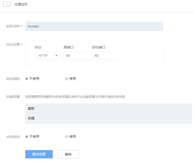 每組監(jiān)聽可以配置一組轉(zhuǎn)發(fā)端口,轉(zhuǎn)發(fā)端口包括源端口和目的端口,目前僅支持 HTTP 和 HTTPS。