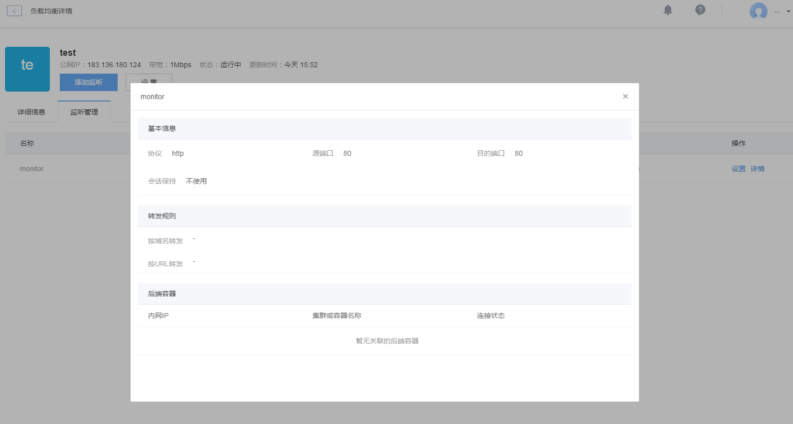 點擊「負(fù)載均衡詳情」中的「監(jiān)聽管理」,可以查看所添加的監(jiān)聽,如下圖所示: