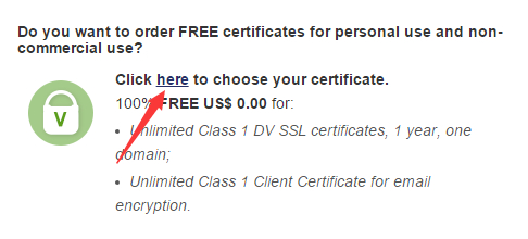 在后臺(tái)面板中我們可以看到很多付費(fèi)的SSL證書,具體的有什么特別之處我也不去了解了,這里找到上圖所示的位置,看到是免費(fèi)證書就是我們要找的,點(diǎn)擊HERE鏈接進(jìn)入下一步看看需要點(diǎn)什么資料才可以申請(qǐng)到。