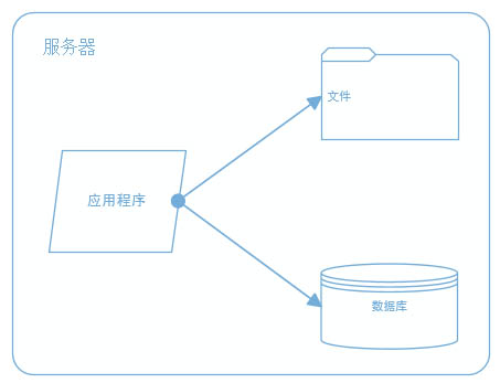 最初的架構(gòu),應(yīng)用程序、數(shù)據(jù)庫(kù)、文件都部署在一臺(tái)服務(wù)器上,如圖:
