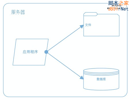 最初的架構,應用程序、數(shù)據(jù)庫、文件都部署在一臺服務器上,如圖: