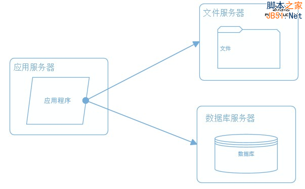 隨著業(yè)務的擴展,一臺服務器已經(jīng)不能滿足性能需求,故將應用程序、數(shù)據(jù)庫、文件各自部署在獨立的服務器上,并且根據(jù)服務器的用途配置不同的硬件,達到最佳的性能效果。