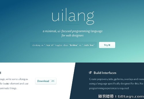 uilang是一個(gè)非常小巧的ui類庫,可以幫助不熟悉前端代碼的web設(shè)計(jì)人員快速的開發(fā)互動(dòng)式UI。你只需要使用“語義式”的說明來控制元素的動(dòng)態(tài)效果。
