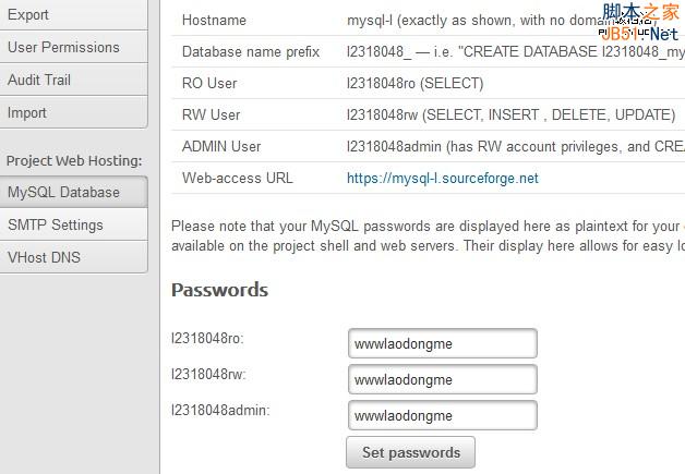 第四、SourceForge創(chuàng)建站點以及設置數據庫密碼
