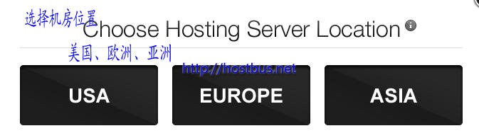 2、選擇主機所在的機房位置:美國機房、歐洲機房、亞洲機房,點擊機房所在地按鈕。