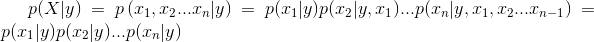 生成式模型的難點(diǎn)在于如何去估計(jì)類概率密度分布p(x|y)。本文采用的樸素貝葉斯模型,其"Naive"在對(duì)類概率密度函數(shù)簡(jiǎn)化上,它假設(shè)了條件獨(dú)立: