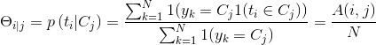 其中1(condition)為條件函數(shù),該函數(shù)表示當(dāng)條件成立是等于1,不成立時(shí)等于0;|V|則表示字典的長(zhǎng)度。