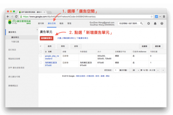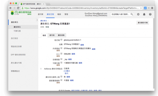 這里示范如何使用 Google DFP 來刊登廣告,突破 AdSense 最多只能放三個廣告的限制。