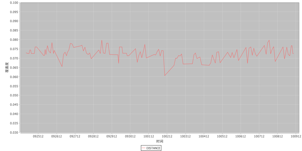 下圖是用戶到POI距離的覆蓋度監(jiān)控。從圖中可以直觀的看出,該特征的覆蓋度約為75%,也即只有75%的用戶能得到距離特征,另外25%可能沒有開手機(jī)定位服務(wù)或者得不到POI的坐標(biāo)。75%的覆蓋度是一個比較穩(wěn)定的指標(biāo),如果覆蓋度變的很高或者很低都說明我們的系統(tǒng)出現(xiàn)了問題,而我們的監(jiān)控系統(tǒng)能及時發(fā)現(xiàn)這種問題。
