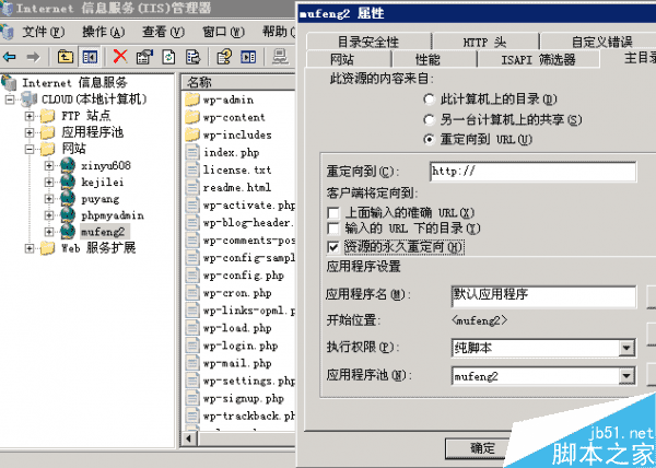 * 找到網(wǎng)站,點(diǎn)擊屬性,找到重定向到URL(U),
