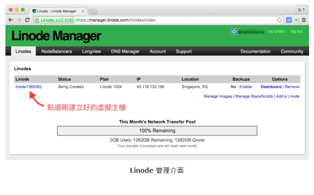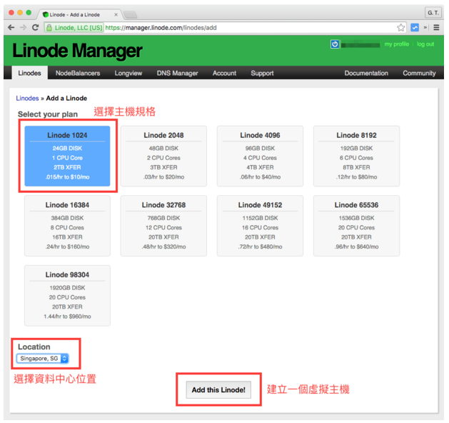 Linode 在全球各地有好幾的資料中心,您可以選擇自己想要的地點(diǎn),如果是一般的中文網(wǎng)站,服務(wù)對象以東亞為主,可以選擇今年四月剛成立的新加坡資料中心。