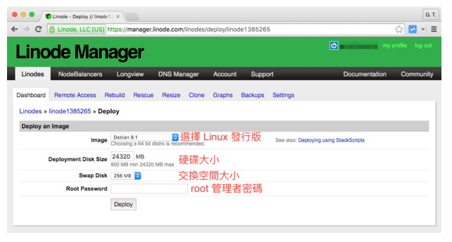 點(diǎn)選「Deploy an Image」,安裝系統(tǒng)。
