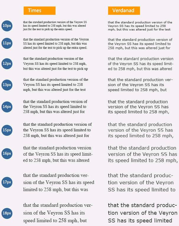 很長(zhǎng)一段時(shí)間里,在互聯(lián)網(wǎng)上我們會(huì)注意這樣的一個(gè)現(xiàn)象,國(guó)外網(wǎng)站大部分以非襯線體為主,而中文網(wǎng)站基本就是宋體。其實(shí)不難理解,襯線字體筆畫有粗細(xì)之分,很小字的情況下細(xì)筆畫就被弱化,受限于電腦的分辨率,10-12px的襯線字體在顯示器上是相當(dāng)難辨認(rèn)的(見(jiàn)下圖);同字號(hào)的非襯線體筆畫簡(jiǎn)潔而飽滿,更適于做網(wǎng)頁(yè)字體。windows下,中文宋體小字點(diǎn)陣的特性,12px、14px的字號(hào)顯示仍然相當(dāng)清晰美觀,便于閱讀。這也就是為什么大多網(wǎng)頁(yè)設(shè)計(jì)制作人員容易機(jī)械性的選用特定字號(hào)或英文或中文的字體。