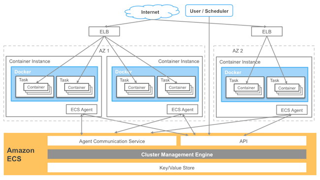 在ECS發(fā)展過程中,亞馬遜優(yōu)先發(fā)展在同一個集群中,針對基于用戶需求的任務自動伸縮冗余性,本地跨越可用區(qū)域(AZs)的能力,當ECS服務調(diào)度啟動新的任務時,它也會嘗試通過集群中的AZs自動平衡這些任務。