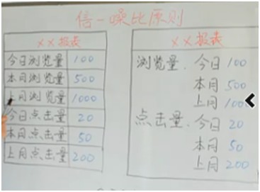 百度商業(yè)UED部門(mén)在為我們介紹網(wǎng)頁(yè)的信噪比原則的時(shí)候就談到“如何清晰的為用戶呈現(xiàn)信息?”,其中談到對(duì)于表格的優(yōu)化中,提出更直觀更簡(jiǎn)潔的優(yōu)化方案,左側(cè)的報(bào)表中,關(guān)于瀏覽量和點(diǎn)擊量進(jìn)行細(xì)分合并,最終成為右邊更簡(jiǎn)潔的報(bào)表,讓用戶看起來(lái)更輕松明白。