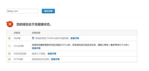 DNSPOD提供域名診斷功能,可以查看域名的解析情況,這個功能可謂是貼心呀。