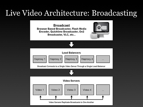 使用 RTMP協(xié)議(視頻流播放協(xié)議),每個流都需要一個獨立的會話,這會帶來昂貴的開銷,但是廣播多播和P2P技術沒有使用, 很多下游的ISP不支持多播,只是利用多播在內(nèi)部服務器進行視頻復制,內(nèi)部帶寬相當廉價,但是也沒有太多好處,因為無法細粒度控制在服務器間復制。