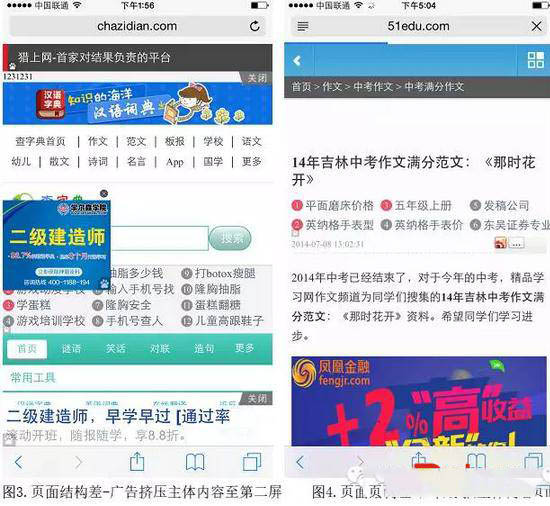 當(dāng)然如果頁(yè)面設(shè)計(jì)的非常合理,但因?yàn)橐苿?dòng)網(wǎng)站的位置有限,將廣告位遮擋住網(wǎng)站的主題自然也是不利于搜索引擎優(yōu)化的,如下圖所示: