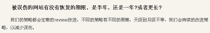 既然策略在定期的改進,無論是天級的還是月級的,至少lee的回答告訴我們:百度沒有永遠的黑名單,只要我們堅持改進網(wǎng)站,恢復(fù)被k的網(wǎng)站是大有可能的,通過這條回答也同樣證明百度也認知到此次k站有誤傷。