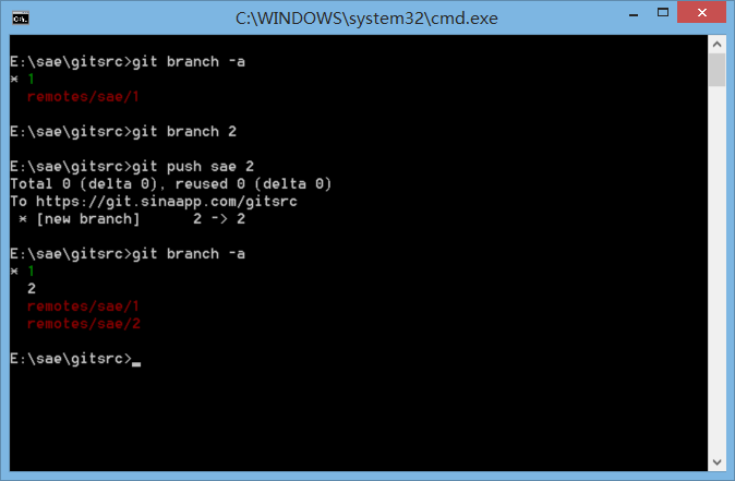 添加一個(gè)Git遠(yuǎn)程倉(cāng)庫(kù)sae,地址為:https://git.sinaapp.com/gitsrc