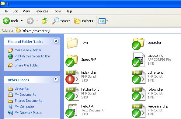 如果一切順利,devcenter應用所有版本代碼將會全部出現(xiàn)在剛剛創(chuàng)建的devcenter文件夾下,如圖: